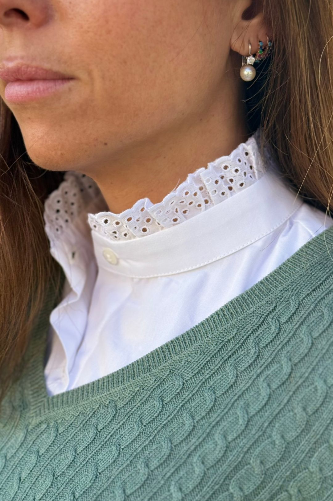 Cuello victoriano con volantes fabricado en tela oxford 100% algodón, de color blanco, bordado en el cuello y cierre delantero. Es un cuello ideal y muy elegante perfecto para cualquier ocasión. Es cómodo y práctico, con ajuste debajo de los brazos para que no se mueva. Está diseñado y confeccionado en España con materiales 100% algodón. Combina con cualquier prenda de tu armario. Es un complemento ideal y versátil. Fabricado a mano con unidades limitadas.
